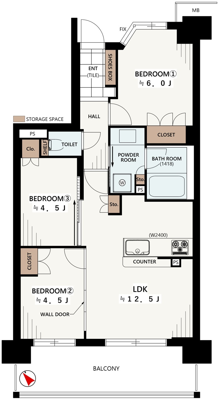 | バルコニー面積 | 11.34m² 南西向き | ||