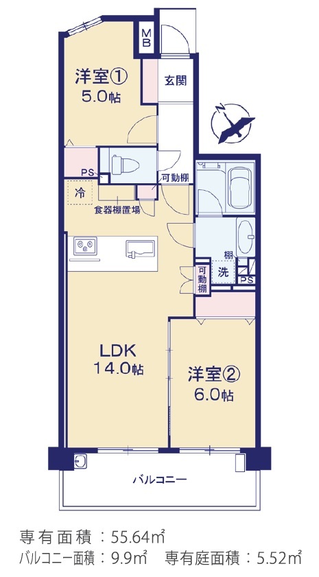 | バルコニー面積 | 9.9m² 南西向き | ||