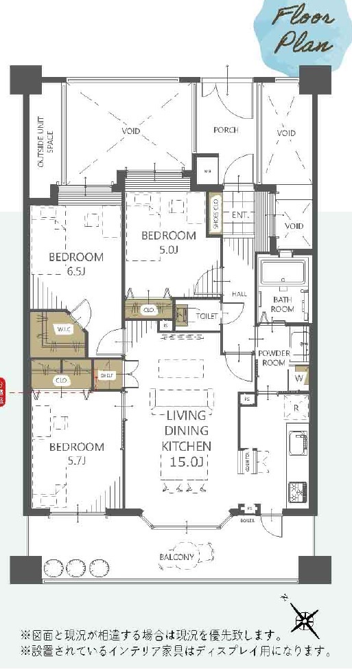 | 間取 | 3LDK + 洋6.5×1・洋5.7×1・洋5×1・LDK15×1 | ||