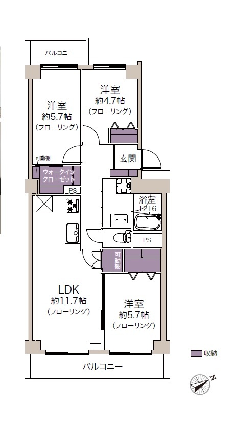 | バルコニー面積 | 9.96m² 南東向き | ||