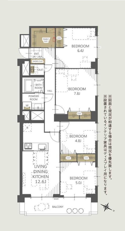 | 間取 | 4LDK + 洋7.8×1・洋6.4×1・洋5×1・洋4.8×1・LDK12.6×1 | ||