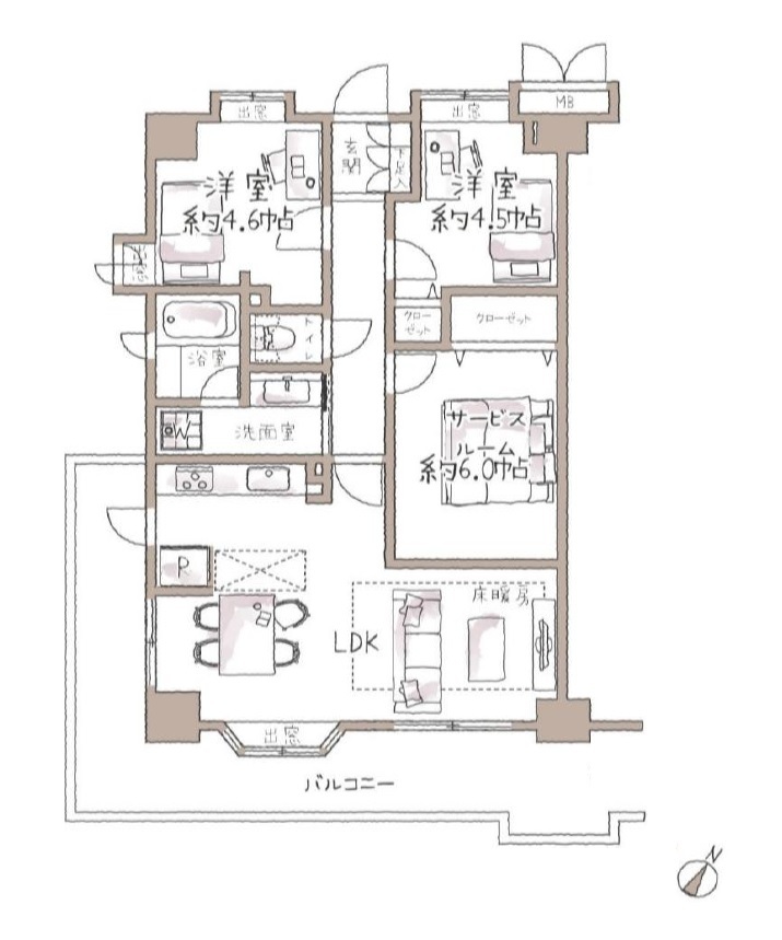 | バルコニー面積 | 15.91m² 南東向き | ||