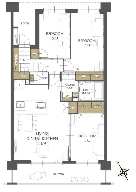 | 間取 | 3LDK + 洋7.4×1・洋6×1・洋5.1×1・LDK13.9×1 | ||