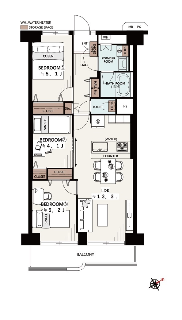 | 専有面積 | 64.4m² (壁芯) | ||