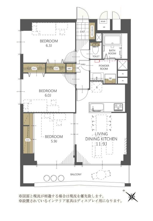 | 間取 | 3LDK + 洋6.3×1・洋6×1・洋5.9×1・LDK11.9×1 | ||