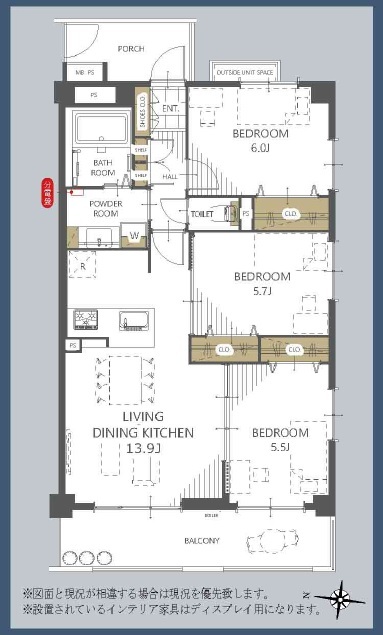 | 間取 | 3LDK + 洋6×1・洋5.7×1・洋5.5×1・LDK13.9×1 | ||