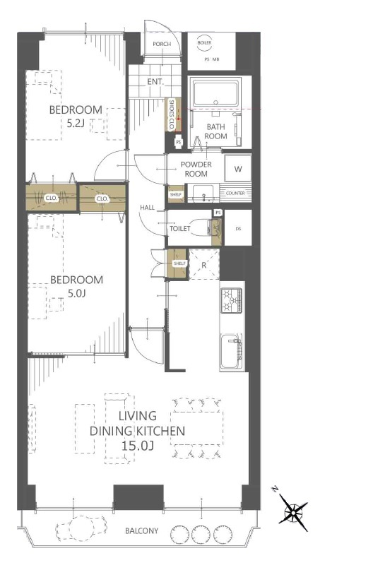 | 間取 | 2LDK + 洋5.2×1・洋5×1・LDK15×1 | ||