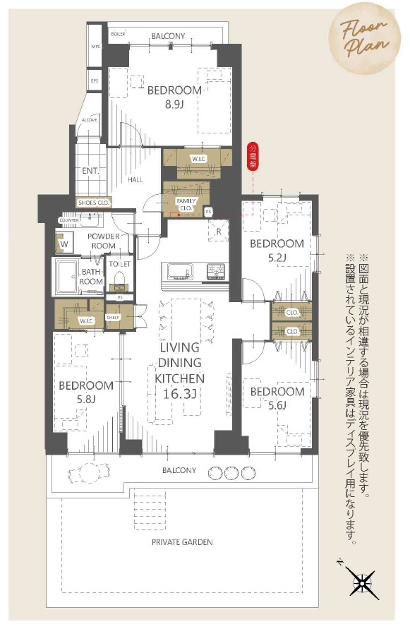 | 間取 | 4LDK + 洋8.9×1・洋5.8×1・洋5.6×1・洋5.2×1・LDK16.3×1 | ||