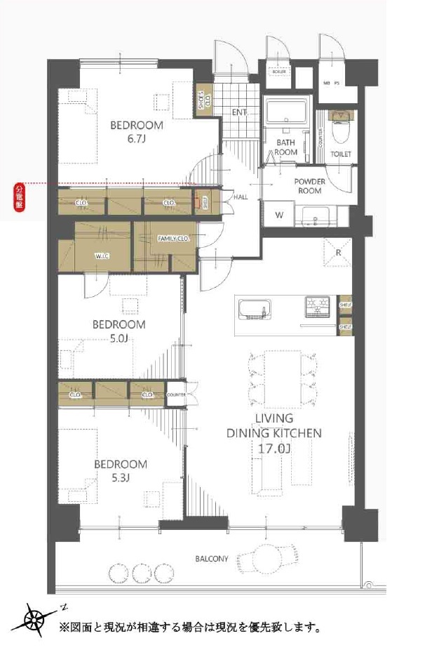 | 間取 | 3LDK + 洋6.7×1・洋5.3×1・洋5×1・LDK17×1 | ||