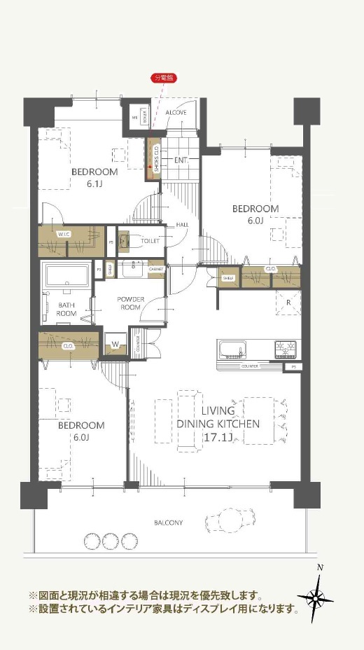 | 間取 | 3LDK + 洋6.1×1・洋6×2・LDK17.1×1 | ||